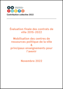 Contribution du réseau national des centres de ressources politique de la ville sur l’évaluation finale des contrats de ville A l’occasion de l’évaluation finale des contrats de ville en 2022, le Centre de ressources politique de la ville de Normandie, comme l’ensemble de son réseau national, a été fortement mobilisé sur ce sujet. Sur cette base, le Réseau national des centres de ressources sur la politique de la ville a publié en novembre 2022 une contribution collective qui a permis à la fois de caractériser la mobilisation des centres sur cette question en fonction des demandes et de revenir sur les principaux enseignements tirés par le RNCRPV pour les prochaines contractualisations. En savoir plus |